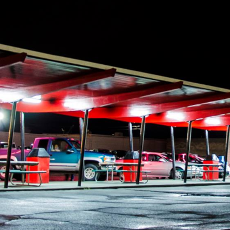 Nothing says old-school quite like Scotty’s Drive-In. The gumball machine, red vinyl seats, Pepsi board menu, and the neon lights at night tempt passersby to stop in for a retro meal and experience. It’s especially hard to pass up during one of their classic car shows.